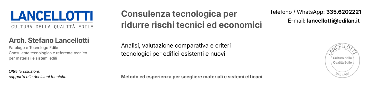 Un caso evidente che riguarda tutto l’involucro; i parapetti murari Negli edifici residenziali storici e semi-storici del Novecento, i fenomeni di degrado degli intonaci esterni rappresentano una criticità ricorrente, spesso riscontrabile a pochi anni da interventi di manutenzione apparentemente corretti. … Continua a leggere INTONACI E TINTEGGIATURE NEGLI EDIFICI RESIDENZIALI DEL 900; PERCHE CONTINUANO A DEGRADARSI E COME EVITARLO