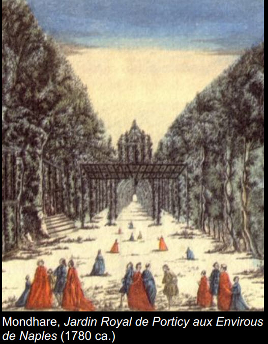 La realizzazione del Sito Reale ha inizio nel 1738. Il progetto della Reggia è affidato a A.Canevari e A.Medrano, il progetto del Parco è attribuito a F. Geri. L’impianto classicistico del parco settecentesco (diviso in Bosco Superiore e Bosco Inferiore) viene trasformato in chiave paesaggistica nei primi decenni del XIX secolo.