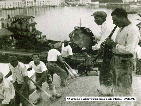 A “vattut’e ll’astreche” è anche una vecchia danza che rievoca la costruzione dei tetti a cupola definiti in gergo “a carusiello”, che hanno caratterizzato l’architettura ischitana e mediterranea.