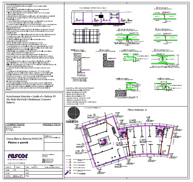 Definite queste due fasi di progetto, viene redatto il progetto sistema vasca bianca Rascor®, ove sono indicate le varie suddivisioni in campiture della platea, della soletta e delle elevazioni, con elementi di fessurazione programmata RASCOtec® e le fasi di avanzamento della costruzione.