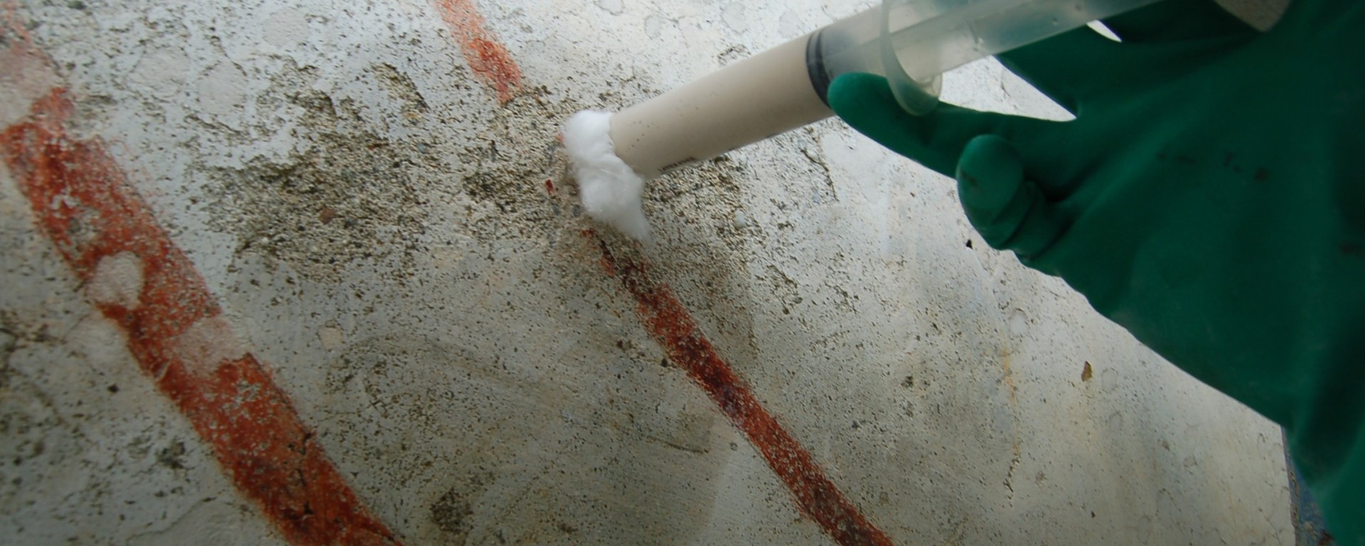 L’operazione di consolidamento di intonaci originali di interesse storico culturale distaccati con o senza decorazione, affreschi e pitture murali in genere, l’incollaggio di intonaci decoesi o tasche parietali con compromessa adesione, il rabbocco di lacune e il riempimento di vuoti mancanti, tra intonaco e la muratura di supporto è una tecnica che richiede particolare cura e pazienza applicativa, eseguito da personale specializzato a qualsiasi altezza su pareti verticali, orizzontali o inclinate, sia piane sia curve.