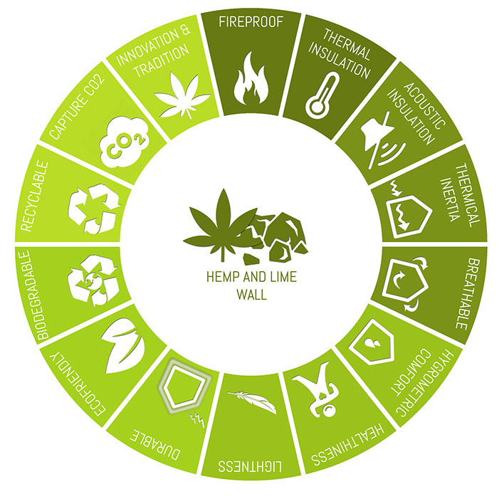 Questo composto si differenza dagli altri materiali isolanti in quanto combina alte proprietà di isolamento e massa termica con una elevata eco-compatibilità, riciclabilità e regolazione igroscopica oltreché essere un materiale a bilancio negativo di emissioni di CO2 capace di catturare e sequestrare 60 kg di CO2 dall’atmosfera per ogni 1 m3 di materiale.
