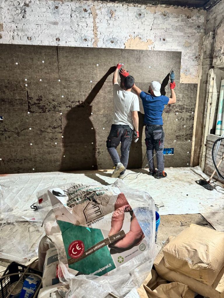 Nel caso specifico vi presento il rivestimento risanante SHOCK ABSORBER composto dal pannello NOBILIUM in fibre di puro basalto di spessore 9 mm abbinato alle elastiche malte pozzolaniche ZEOCALCE, compatibili con qualsiasi supporto grazie al loro modulo elastico.
