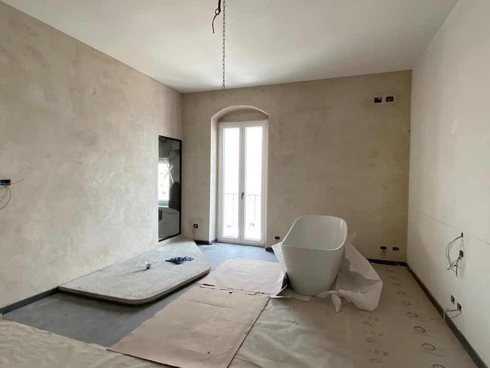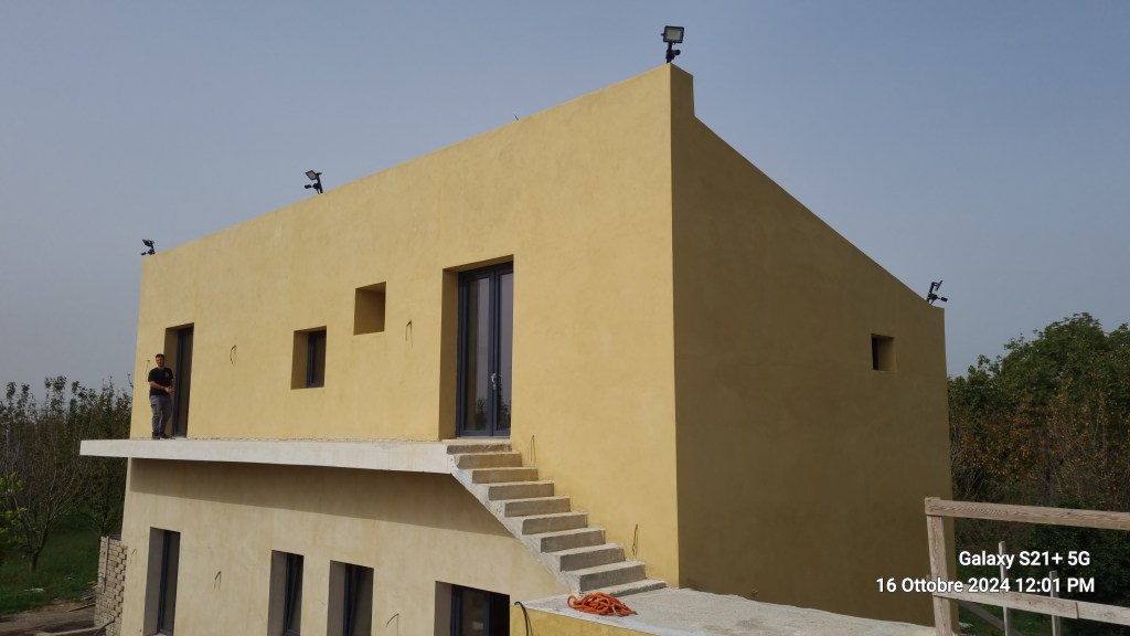 finiture con rivestimenti protettivi e decorativi in calce pozzolanica colorati in massa e pitture ai silicati di potassio e al grassello di calce.