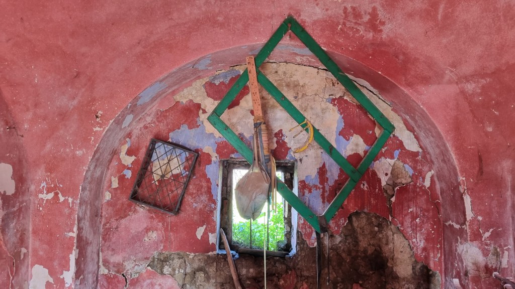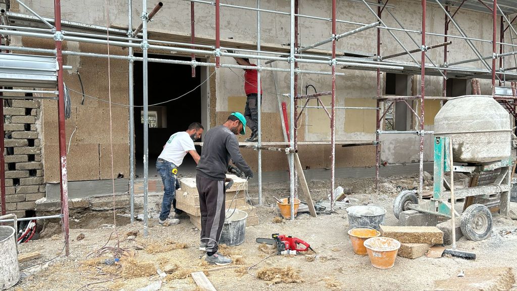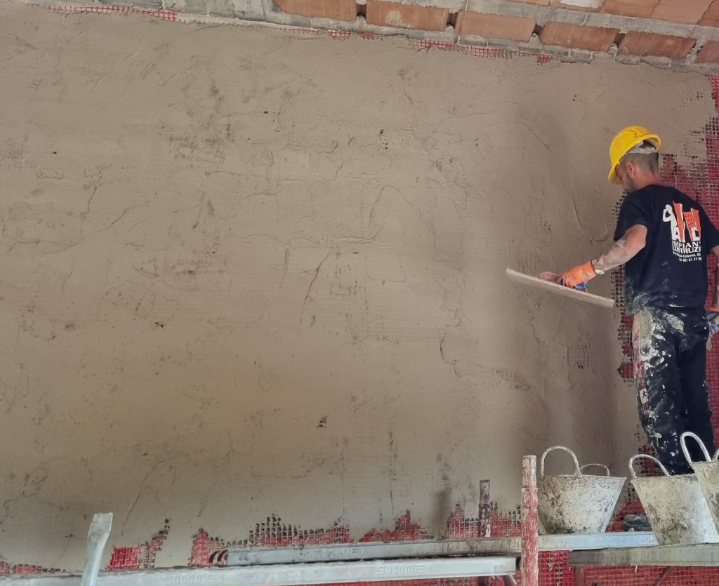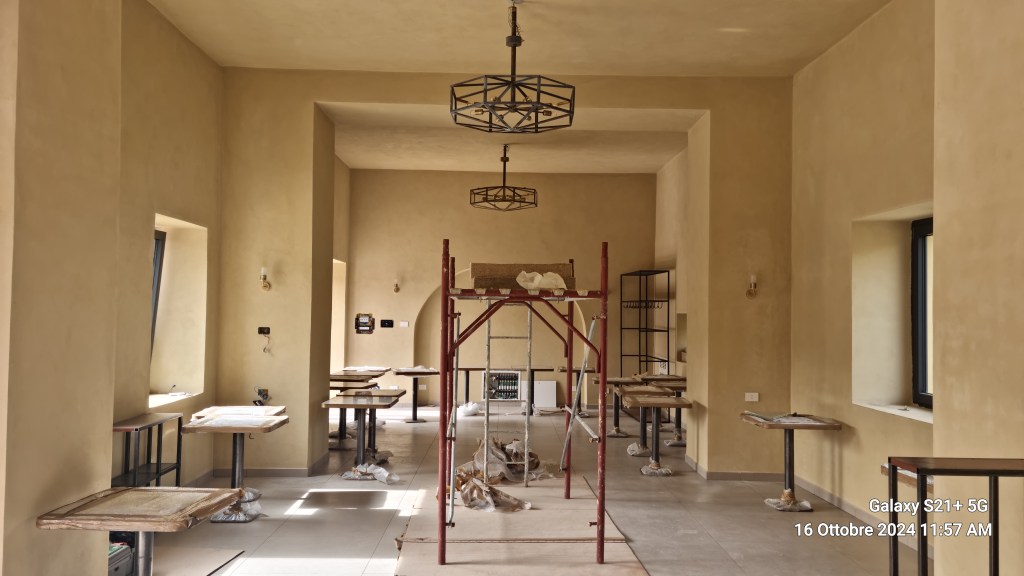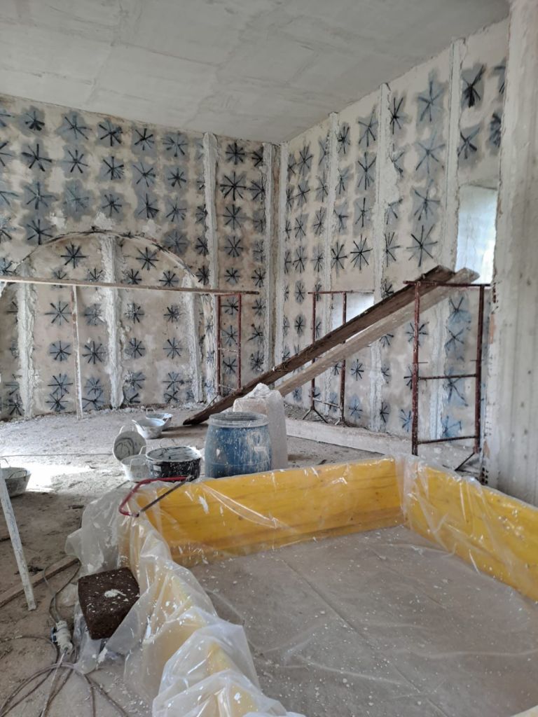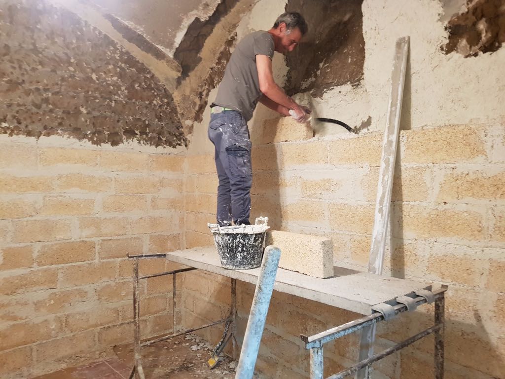 la regolarizzazione delle lacune murarie e degli intonaci di fondo eseguiti con l’impiego delle malte di calce pozzolanica ZEOCALCE perfettamente compatibili con i supporti in tufo