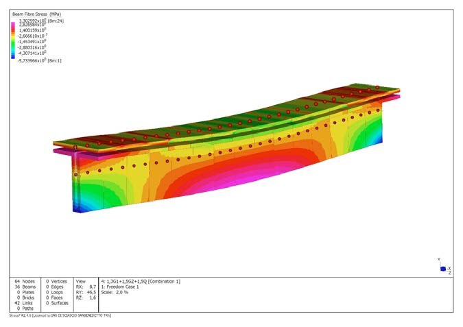 Contour delle tensioni longitudinali prodotte dalla combinazione di carico allo SLU 1,3G1+1,5G2+1,5*Q